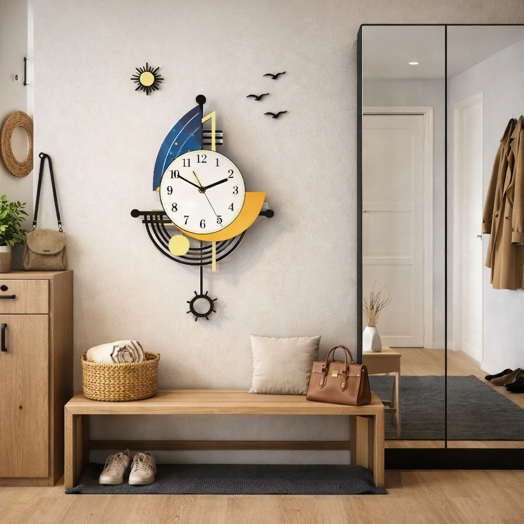 Cette horloge murale au design contemporain s’intègre comme un élément visuel structurant sur un mur et contribue à donner du caractère à la pièce. Ses lignes épurées et ses formes entrelacées apportent une lecture claire de l’espace et s’inscrivent dans une esthétique moderne et équilibrée, adaptée à un salon, un bureau ou un espace de vie. Elle participe à une ambiance calme et ordonnée, sert de repère visuel discret au quotidien et accompagne une décoration soignée, en cohérence avec un intérieur contemporain sans surcharge décorative.
