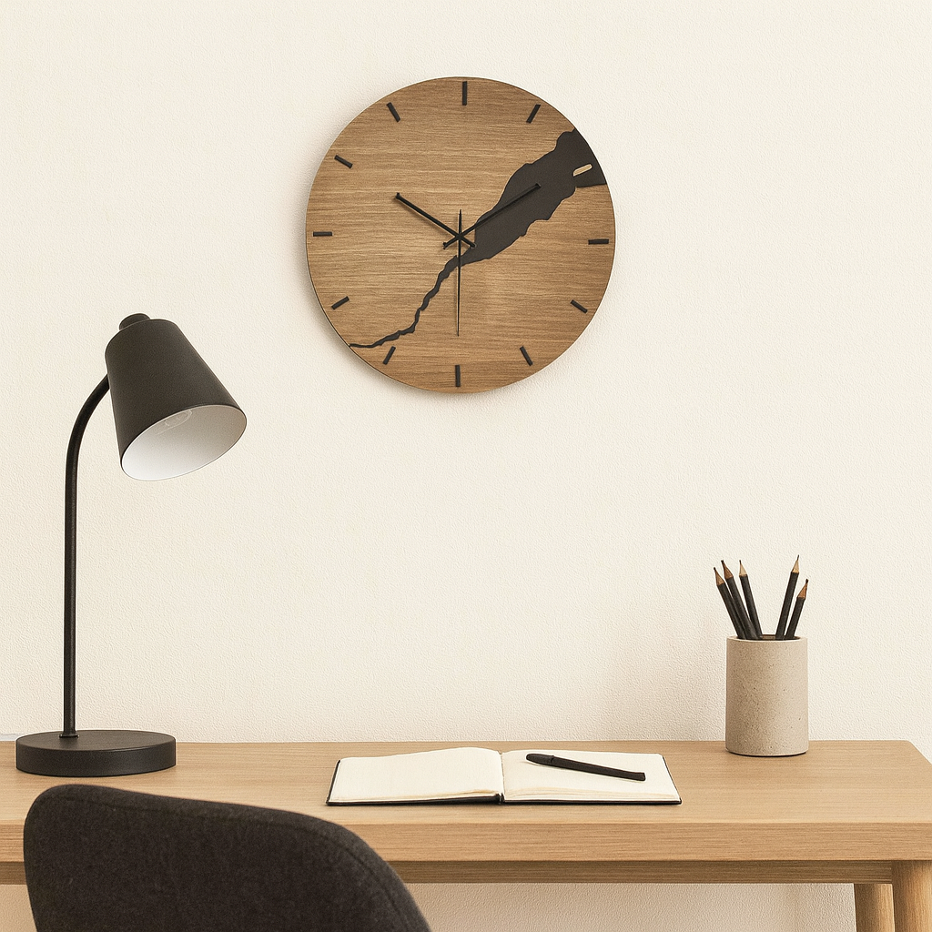 Cette horloge murale design en bois associe une esthétique naturelle à un style contemporain, et trouve facilement sa place dans un salon, un bureau ou une chambre. Son bois aux teintes chaleureuses et son design épuré et géométrique apportent une présence visuelle équilibrée, sans surcharger le mur, en cohérence avec une décoration moderne, nordique ou minimaliste. Elle offre une lecture claire de l’heure et un fonctionnement silencieux, contribuant à une ambiance calme et ordonnée. Pensée comme un objet décoratif fonctionnel, elle s’intègre durablement dans le quotidien et accompagne un intérieur recherchant simplicité, cohérence visuelle et confort d’usage.